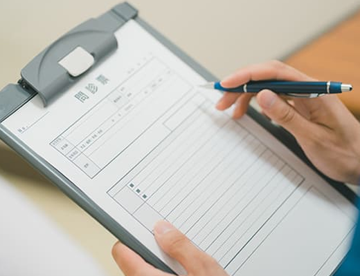 問診表をもとに病状をお伺いさせていただきます。